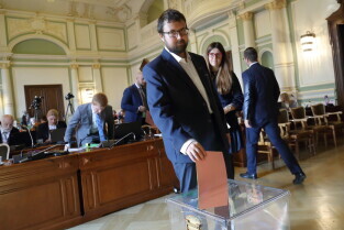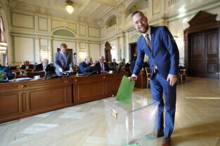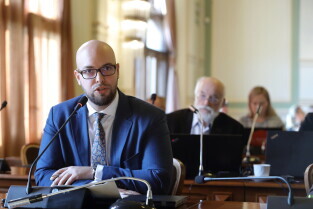 Gdańsk. XV sesja Rady Miasta Gdańska. Nz.Radny Dawid Krupej.