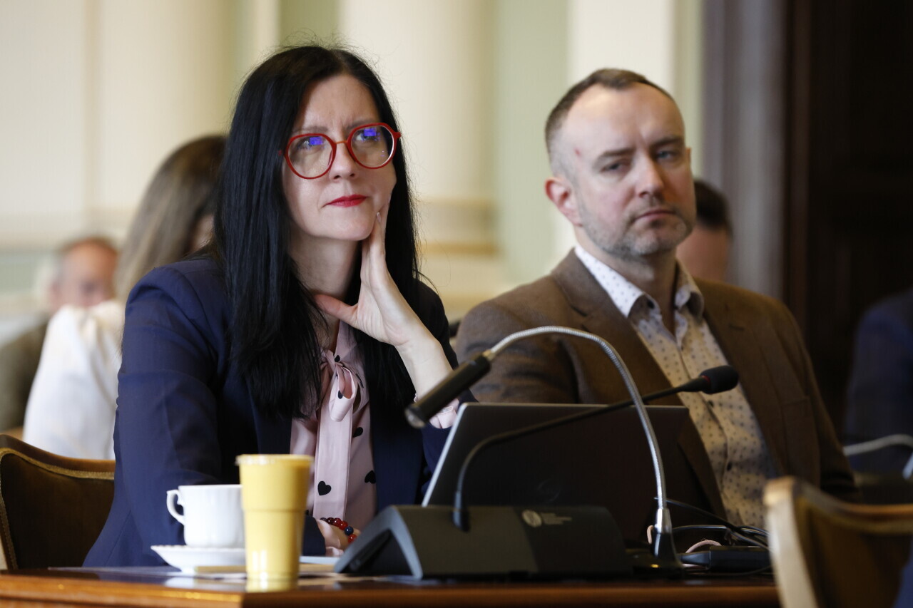 Gdańsk.XV sesja Rady Miasta Gdańska. Nz. Sylwia Cisoń i Karol Ważny.