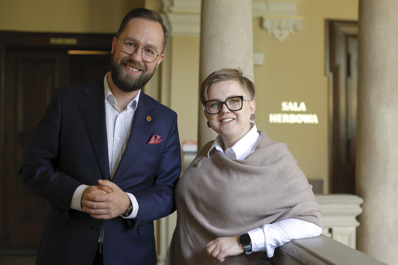 Gdańsk.XV sesja Rady Miasta Gdańska. Nz. Łukasz Kłos i Wioletta Krewniak.