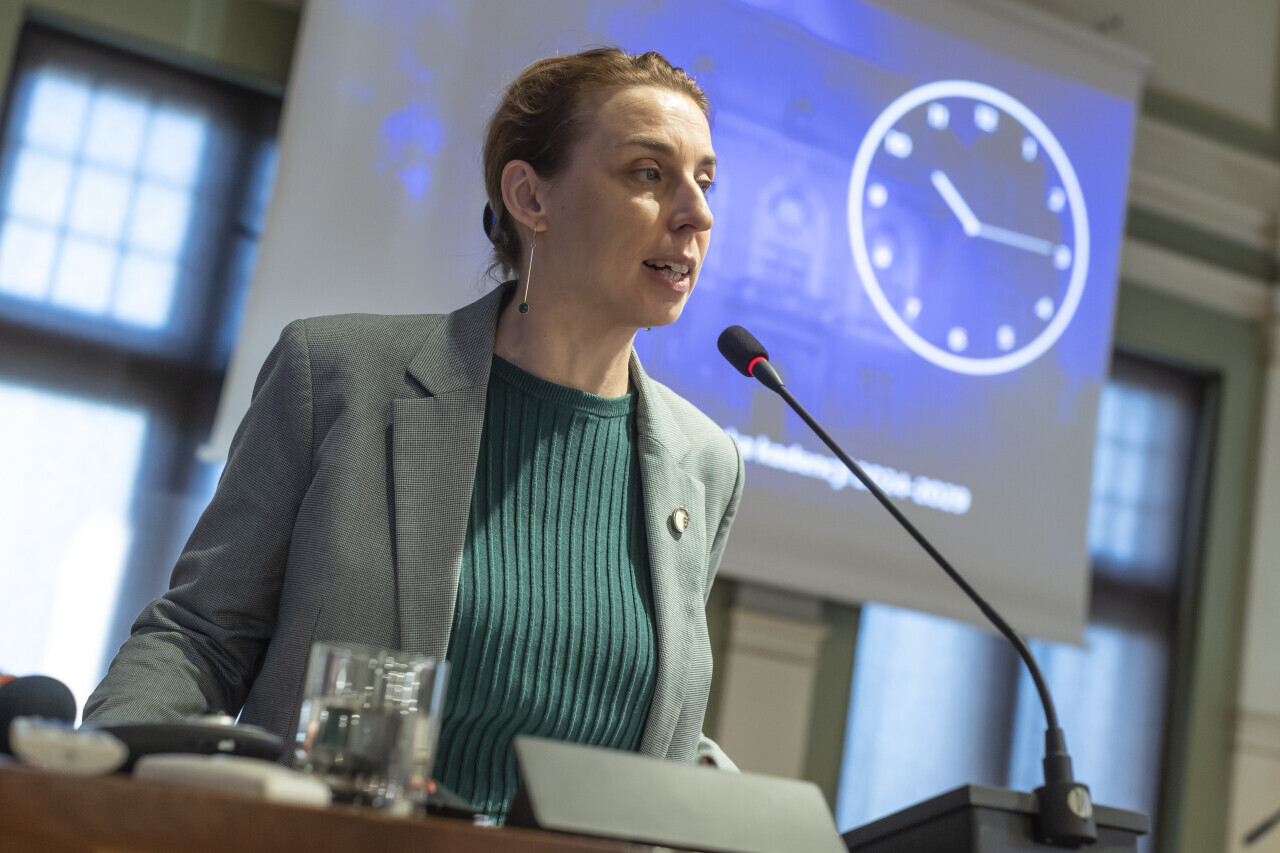 Gdańsk. XXI sesja Rady Miasta Gdańska. Nz. Wiceprezydentka Gdańska Monika Chabior.