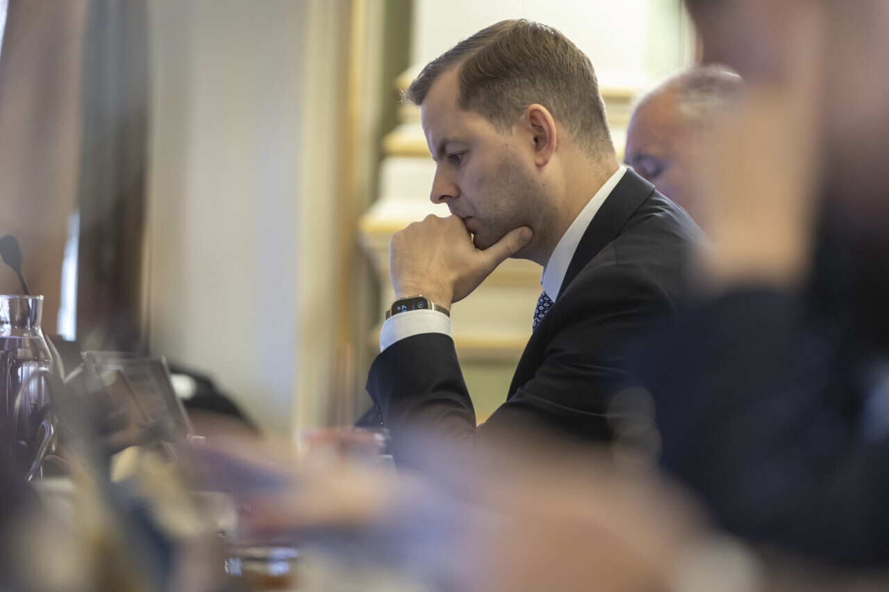 Gdańsk. XXI sesja Rady Miasta Gdańska. Nz. Radny Maximilian Kieturakis.