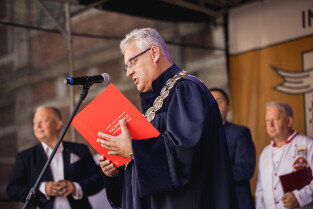 Gdańsk,ul. Długi Targ. XXVI Święto Chleba na Jarmarku św. Dominika. Uroczyste Otwarcie. Nz. Wiceprezydent Gdańska Piotr Borawski