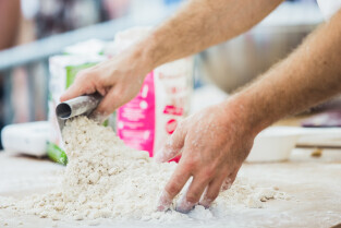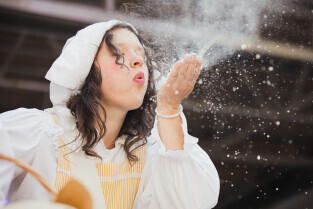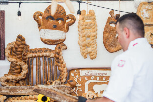 Gdańsk,ul. Długi Targ. XXVI Święto Chleba na Jarmarku św. Dominika. Uroczyste Otwarcie. Nz. Piotr Gotowała