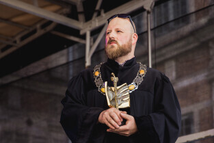 Gdańsk,ul. Długi Targ. XXVI Święto Chleba na Jarmarku św. Dominika. Uroczyste Otwarcie. Nz. Andrzej Szydłowski