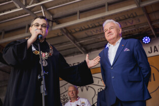 Gdańsk,ul. Długi Targ. XXVI Święto Chleba na Jarmarku św. Dominika. Uroczyste Otwarcie. Nz. Poseł na Sejm RP Kazimierz Smoliński
