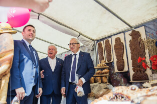 Gdańsk,ul. Długi Targ. XXVI Święto Chleba na Jarmarku św. Dominika. Uroczyste Otwarcie. Nz. (od lewej) Wiceprezydent Gdańska Piotr Borawski, Andrzej Szydłowski i Poseł na Sejm Kazimierz Smoliński