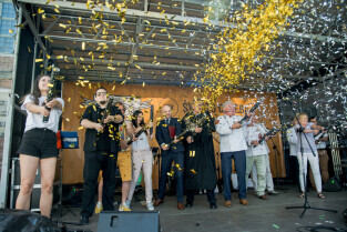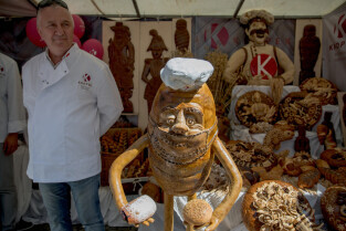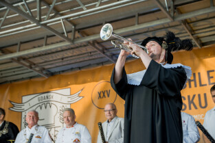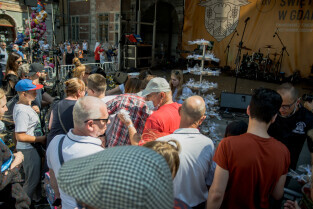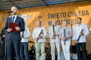 Gdańsk, Długi Targ. XXV Święto Chleba na Jarmarku św. Dominika. Uroczyste Otwarcie. Nz. Piotr Koperski