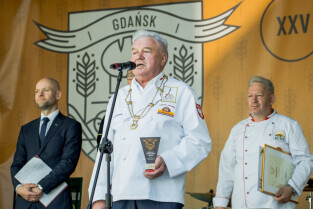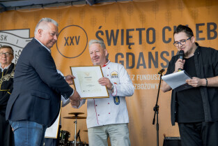 Gdańsk, Długi Targ. XXV Święto Chleba na Jarmarku św. Dominika. Uroczyste Otwarcie. Nz. Andrzej Szydłowski