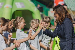 Gdańsk, ul. Traugutta. XXV edycja Pucharu Tymbarku. Nz. Aleksandra Dulkiewicz, prezydent Gdańska