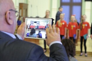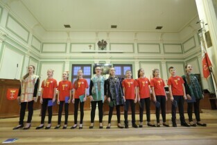 Gdańsk. XXXII Sesja Rady Miasta Gdańska. Ostatnia w tym roku sesja rady Miasta Gdańska. Podczas Sesji uchwalono Budżet miasta na 2017 rok. Nz. Występ uczniów ze szkoły podstawowej nr8