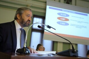 Gdańsk. XXXVII posiedzenie Rady Miasta Gdańska. Nz. Roland Budnik-Dyrektor gdańskiego PUP