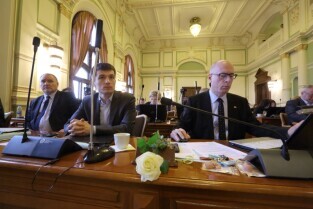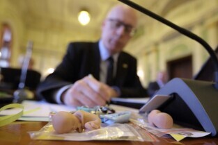 Gdańsk. XXXV Sesja Rady Miasta i protest przeciwko metodzie in vitro. Nz. Radny Piotr Dzik.