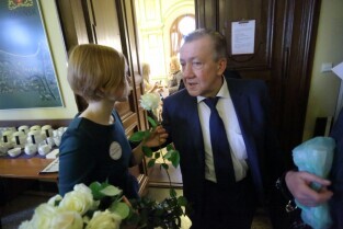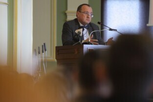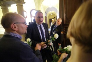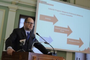 Gdańsk. XXXV Sesja Rady Miasta i protest przeciwko metodzie in vitro. Nz. Prezydent Gdańska Paweł Adamowicz.