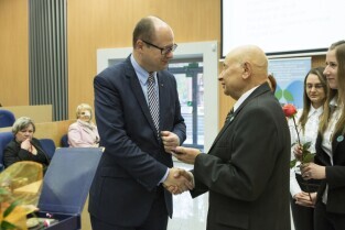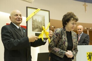 XX-lecie Stowarzyszenia Walki z Rakiem Płuca. Gdańsk, Urząd Marszałkowski Woj. Pomorskiego. Nz. Prezes Stowarzyszenia prof. Jan Skokowski i Wicemarszałek Woj. Pomorskiego Hanna Zych-Cisoń