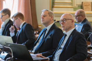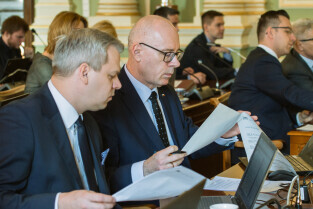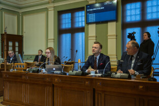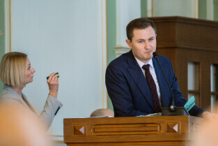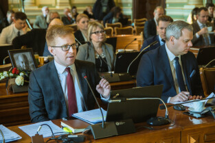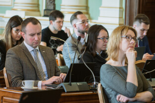 Gdańsk, Nowy Ratusz ul Wały Jagiellońskie. XX sesja Rady Miasta Gdańska. Nz. Wiceprezydent Piotr Grzelak