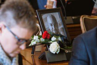 Gdańsk, Nowy Ratusz ul Wały Jagiellońskie. XX sesja Rady Miasta Gdańska. Nz. Karol Ważny