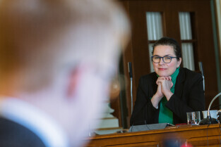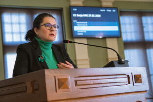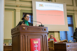 Gdańsk, Nowy Ratusz ul Wały Jagiellońskie. XX sesja Rady Miasta Gdańska. Nz. Beata Dunajewska