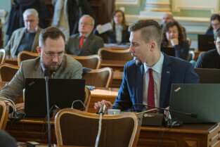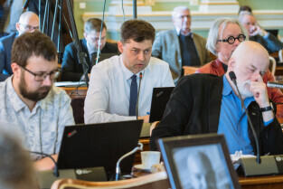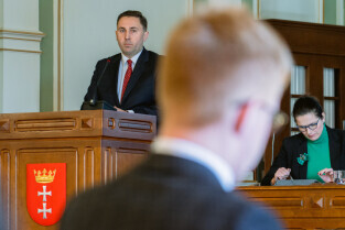 Gdańsk, Nowy Ratusz ul Wały Jagiellońskie. XX sesja Rady Miasta Gdańska. Nz. Wojciech Błaszkowski