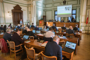 Gdańsk, Nowy Ratusz ul Wały Jagiellońskie. XX sesja Rady Miasta Gdańska