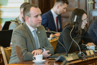 Gdańsk, Nowy Ratusz ul Wały Jagiellońskie. XX sesja Rady Miasta Gdańska. Nz. Wiceprezydent Gdańska Piotr Borawski