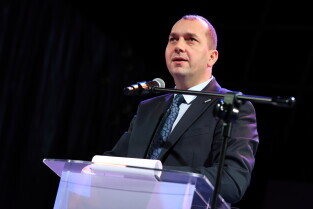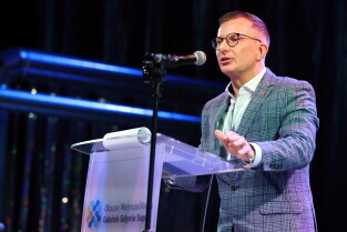 Gdańsk. X Metropolitalne Spotkanie Noworoczne. Nz. Wystąpienie prof. dr hab. Marcina Gruchały.