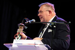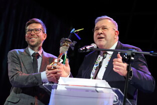 Gdańsk. X Metropolitalne Spotkanie Noworoczne. Nz. Wystąpienie Jakuba Kaszuby.