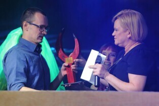 24 Festiwal Polskich Wideoklipów YACH FILM 2015. Nz Grand Prix wręczyła Katarzyna Figura dla Filipa Załuska za wideoklip "The Fib" zespołu Rysy.