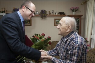 Prezydent Gdańska Paweł Adamowicz złożył życzenia Panu Alfonsowi Gołuńskiemu, który obchodzi swoje 100. urodziny