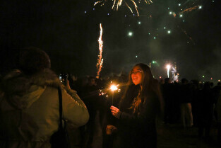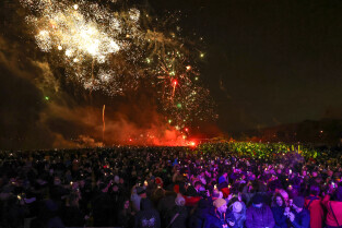 Gdańsk. Mieszkańcy Gdańska przywitali Nowy Rok na plaży w Brzeźnie na organizowanej przez miasto imprezie sylwestrowej.
