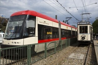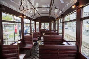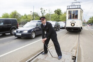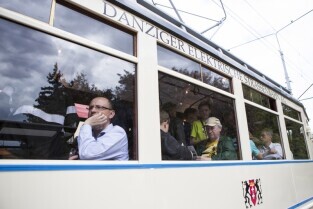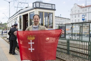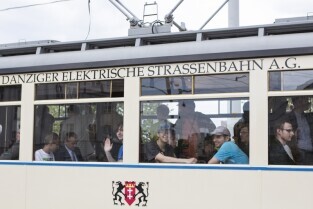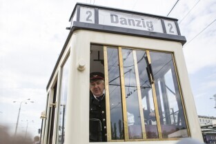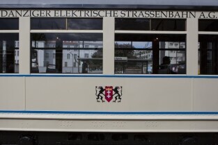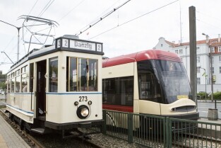 Gdańsk, przystanek Nowe Ogrody. Prezentacja zabytkowego tramwaju Ring, wyprodukowanego w 1930 roku w Gdańskiej Fabryce Wagonów