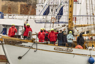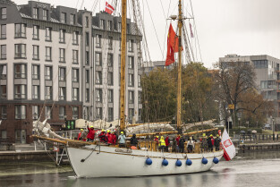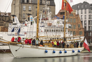 Żaglowiec Generał Zaruski został powitany przy nabrzeżu Narodowego Muzeum Morskiego na Wyspie Ołowianka w Gdańsku.. Po powrocie z 101-dniowego rejsu na Spitsbergen