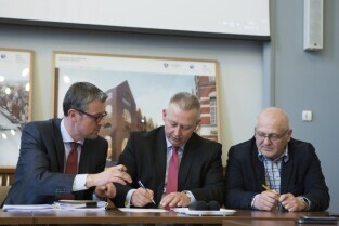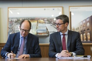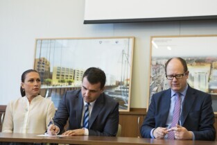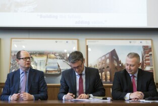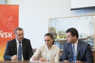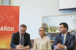 Urząd Miejski w Gdańsku. Podpisanie umowy o partnerstwie publiczno-prywatnym na „Zagospodarowanie północnego cypla Wyspy Spichrzów Gdańsku”, pomiędzy konsorcjum Multibud-Immobel i Miastem Gdańsk