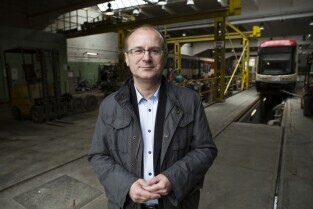 Gdańsk Strzyża. Wizyta w zajezdni tramwajowej Zakładu Komunikacji Miejskiej w Gdańsku. Nz. Wiceprezes ZKM Gdańsk Maciej Lisicki