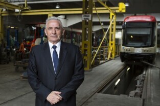 Gdańsk Strzyża. Wizyta w zajezdni tramwajowej Zakładu Komunikacji Miejskiej w Gdańsku. Nz. Prezes ZKM Gdańsk Jerzy Zgliczyński