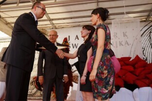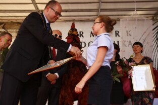 Gdańsk, Długi Targ. Zakończenie 752. Jarmarku św. Dominika. Nz. prowadzący uroczystość Michał Juszczakiewicz