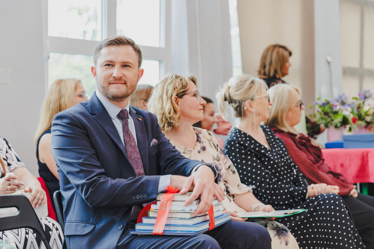 Gdańsk, ul. Lilli Wenedy. Zakończenie roku szkolnego w SP 24. Nz. wiceprezydent Piotr Grzelak