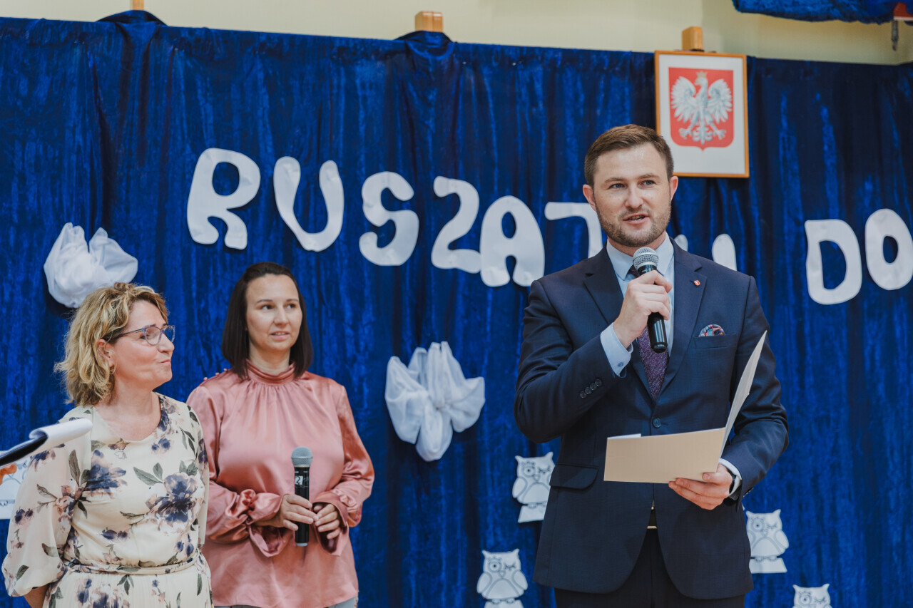 Gdańsk, ul. Lilli Wenedy. Zakończenie roku szkolnego w SP 24. Nz. wiceprezydent Piotr Grzelak