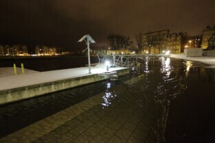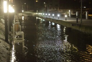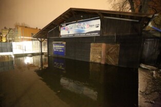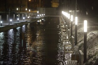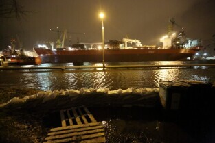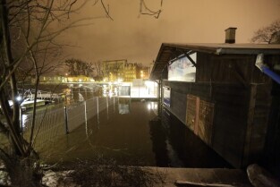 Gdańsk. Sztorm, wiatr i cofka na Wiśle! Nz. Zalana przystań Żabi Kruk.