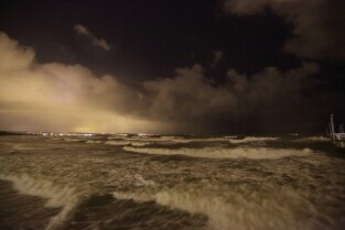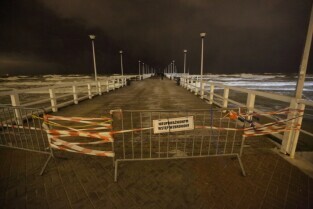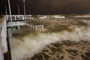 Gdańsk. Sztorm, wiatr i cofka na Wiśle! Nz. Zamknięte Molo w Brzeżnie.