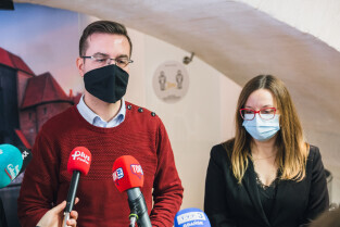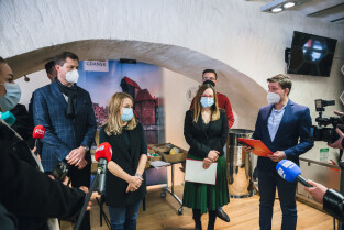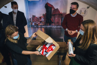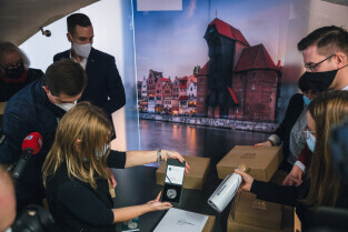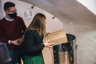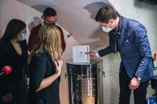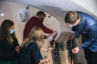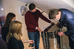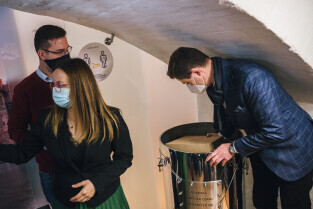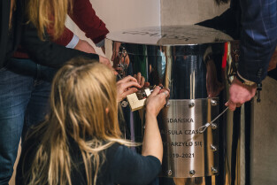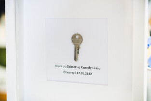 Gdańsk, Hevelianum. Zamknięcie Gdańskiej Kapsuły Czasu. W wydarzeniu brali udział Piotr Grzelak zastępca prezydenta ds. zrównoważonego rozwoju, Agnieszka Owczarczak, przewodnicząca Rady Miasta Gdańska i pomysłodawcy: Beata Dunajewska, radna miasta Gdańska, Cezary Śpiewak-Dowbór, radny miasta Gdańska