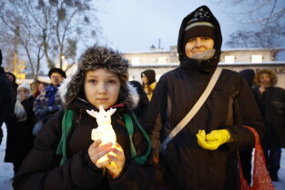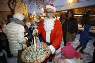 Gdańsk. Zapalenie światełek na choince i wizyta św, Mikołaja na Wyspie Sobieszewskiej.