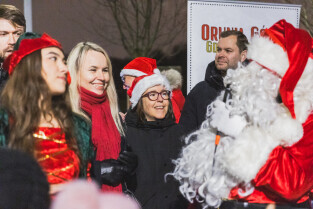 Gadańsk, przy zbiorniku Augustowska. Zapalenie światełek na choince w dzielnicy Orunia Górna - Gdańsk Południe. W wydarzeniu brała udział Aleksandra Dulkiewicz prezydent Gdańska, towarzyszyli jej radni miejscy i dzielnicowi.
