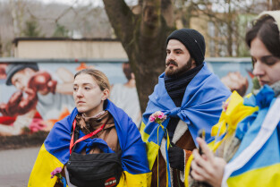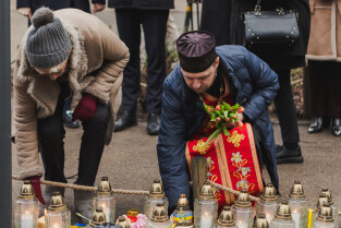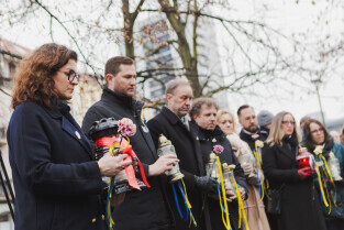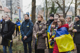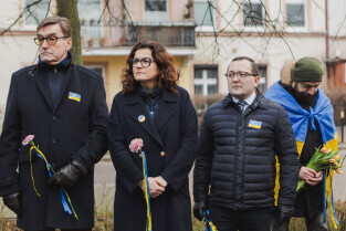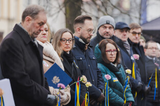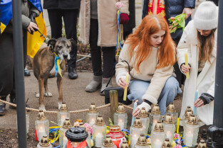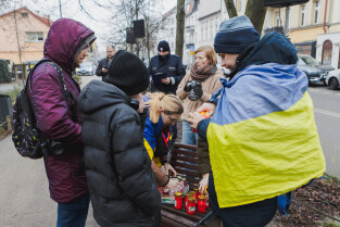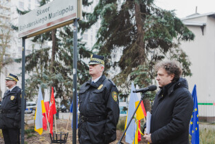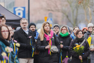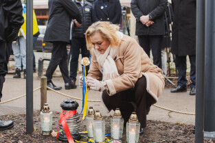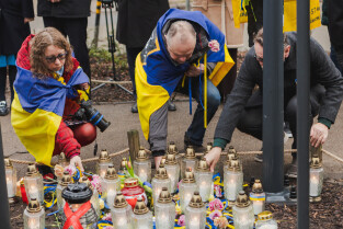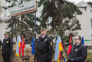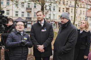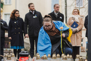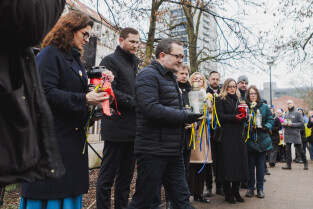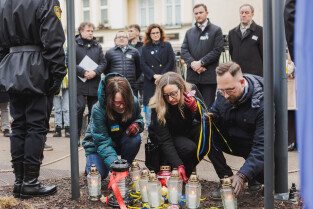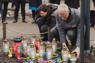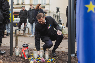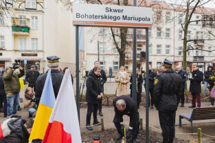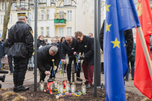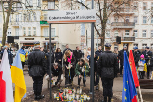 Gdańsk, skwer Bohaterskiego Mariupola. Zapalenie zniczy w rocznicę napaści Rosji na Ukrainę