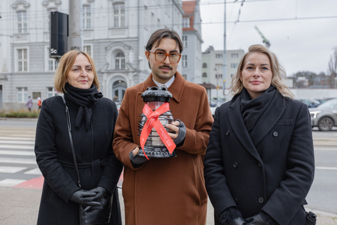 Gdańsk. Zapalenie zniczy w miejscach śmierci ofiar Grudnia ’70. Znicze zapaliła Prezydent Gdańska Aleksandra Dulkiewicz, przedstawiciele rodzin ofiar i ECS, oraz radny miejski Andrzej Kowalczys