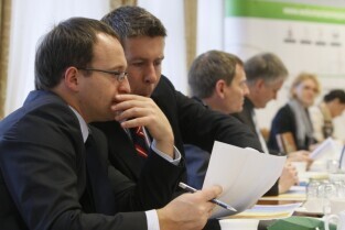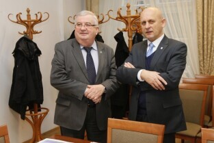 Pierwsze po zarejestrowaniu posiedzenie Zarządu Stowarzyszenia Gdański Obszar Metropolitalny. Gdańsk, UMG przy Długim Targu. Nz. przedstawiciele Sopotu: Marcin Skwierawski i Bartosz Piotrusiewicz