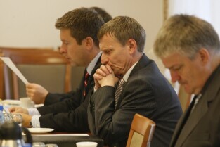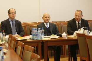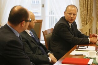 Pierwsze po zarejestrowaniu posiedzenie Zarządu Stowarzyszenia Gdański Obszar Metropolitalny. Gdańsk, UMG przy Długim Targu. Nz. od prawej: Dyrektor O/Gdańsk GDDKiA Robert Marszałek, Józef Reszke (Pow. Wejherowski), Paweł Adamowicz (Gdańsk)