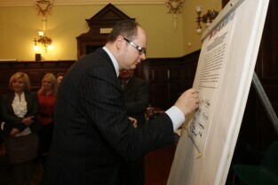 Posiedzenie Zarządu i Walne Zgromadzenie Stowarzyszenia Gdański Obszar Metropolitalny, podczas którego m.in. zaprezentowano oraz podpisano deklarację współpracy pomiędzy Powiatowymi Urzędami Pracy. Gdańsk, Nowy Ratusz