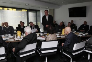 PGE Arena Gdańsk. Posiedzenie zarządu Gdańskiego Obszaru Metropolitalnego, głównie poświęcone przygotowaniom metropolii do UEFA Euro 2012 w Gdańsku. Nz. Komendant Miejski PSP w Gdańsku Wojciech Prusak