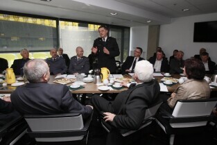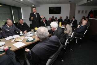PGE Arena Gdańsk. Posiedzenie zarządu Gdańskiego Obszaru Metropolitalnego, głównie poświęcone przygotowaniom metropolii do UEFA Euro 2012 w Gdańsku. Nz. Komendant Straży Miejskiej w Gdańsku Leszek Walczak