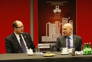 Posiedzenie Zarządu Stowarzyszenia Gdański Obszar Metropolitalny. Gdańsk, siedziba targów Amberexpo. Nz. Dyrektor Powiatowego Urzędu Pracy w Gdańsku Roland Budnik